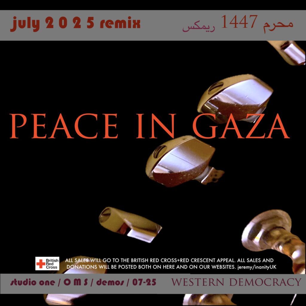 Peace in Gaza. A 9 minute piece, Three distinct passages – An attempt to tell a story/make a sonic response to world events. Original release art and the new version for the remixed release to amend a poor drum sound.